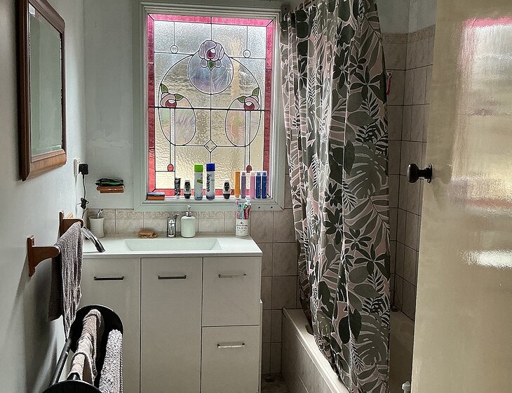 We have a single story older style home, 3 bedrooms, one bathroom-please note shower is over the bath.
