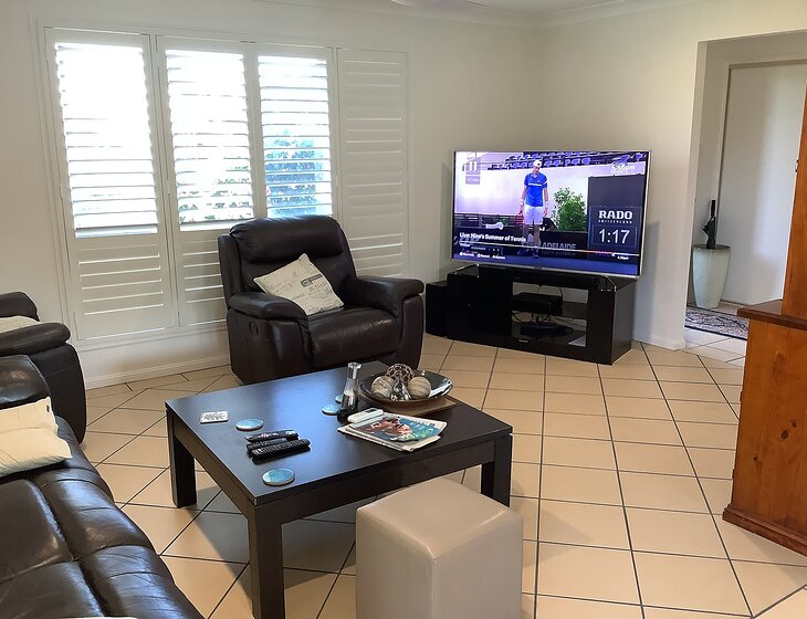 Our home is a 4 b/m brick home at Sandstone Point, with air conditioning, 65 inch tv , Foxtel & Stan .5 mins from beautiful Bribie Island with its 2 lagoon style beaches and a surf beach 15 mins away on the west side of Bribie. New 5 m pool . You will be required to take a pool sample to pool shop on Bribie Is.