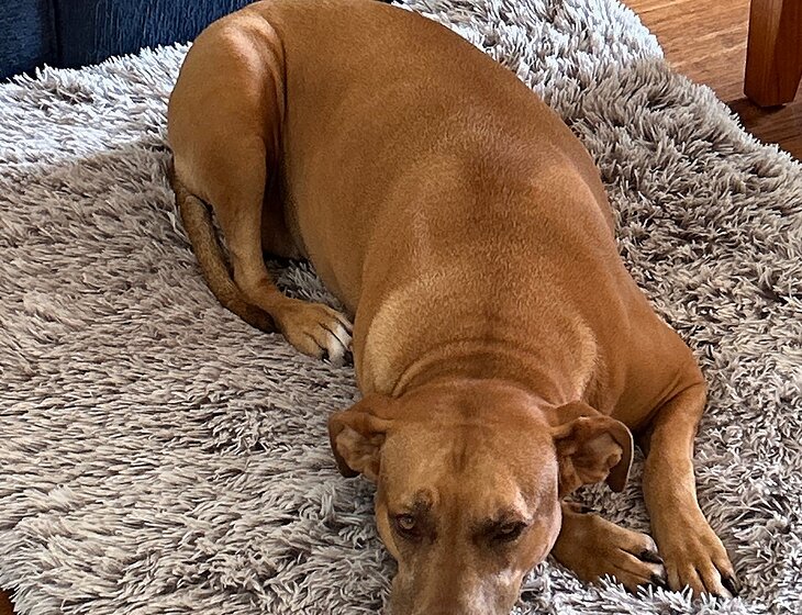 Butch is a Cattle Dog cross and Zoey is a Staffy cross. Both are large dogs (approx. 25.5kg & 33.1kg). They are 7.5 years old.