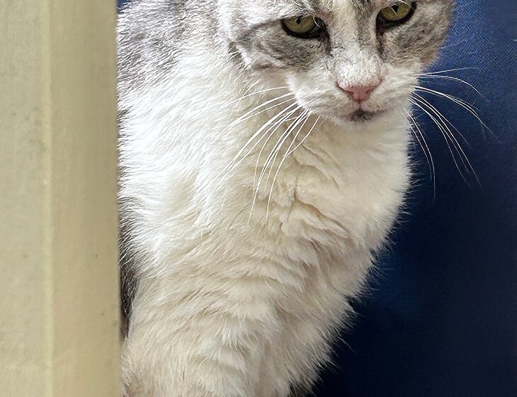 Silver the cat is about 17 years old. He is deaf and suffers from arthritis.