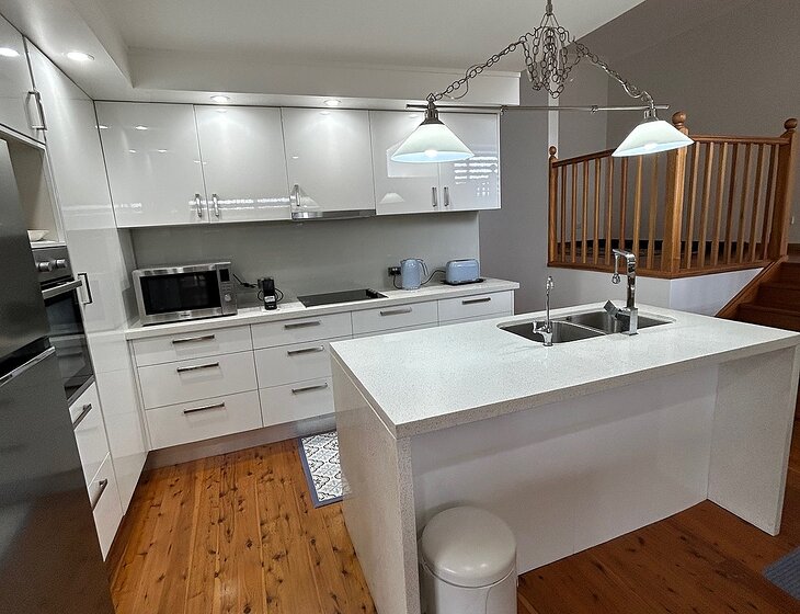 My house is a comfortable house that is conveniently located within a short walking distance to the shops, and it is close to the beaches. It has three bedrooms, two bathrooms, a lounge, dining area and a fully equipped kitchen and laundry. Please feel free to make yourself at home and enjoy these amenities. There is space on the driveway to park your car and also the front lawn for a caravan.