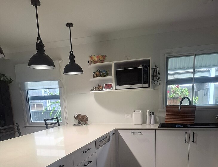 We have a very neat, clean small house with 2 bedrooms, one bathroom and a nice deck and small garden. We have 1 small.dog who loves company and needs feeding morningand night. We are 800m from the waterfront. There is internet with Stan, Netflix and Prime available. Nice waterfront walks and close to shops and restaurants.