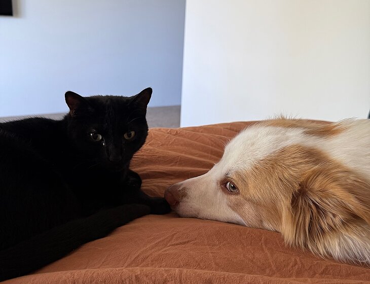 1x Border Collie (Darcy) & 1x Short Hair Domestic Black Cat ( Blair)
