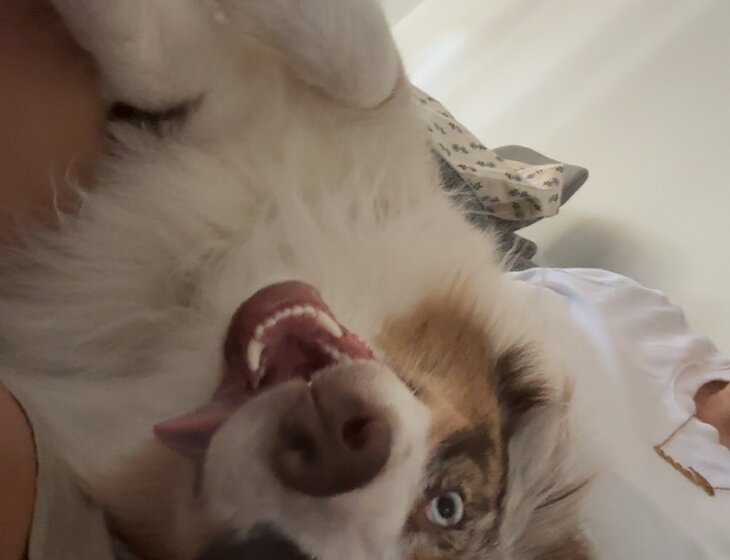 About my dog - 1.5yr old Australian Shepherd, fun loving little dog who loves to play and then cuddle on the couch.