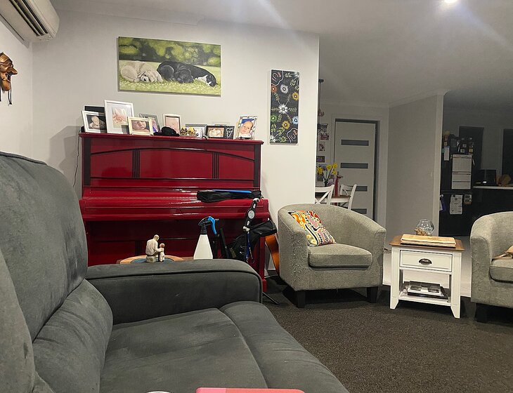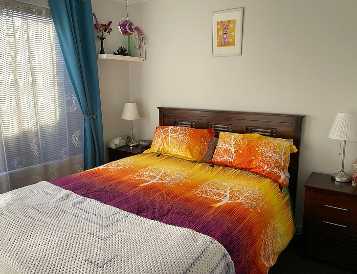 Our house is a comfortable size for an older couple like us or solo traveler but we have a comfortable queen bed in our guest room and a kitchen to die for (well I love it!). The yard is neat. The 'lawn' is only around 5m x 5m, so it only takes us about 7 mins to mow.