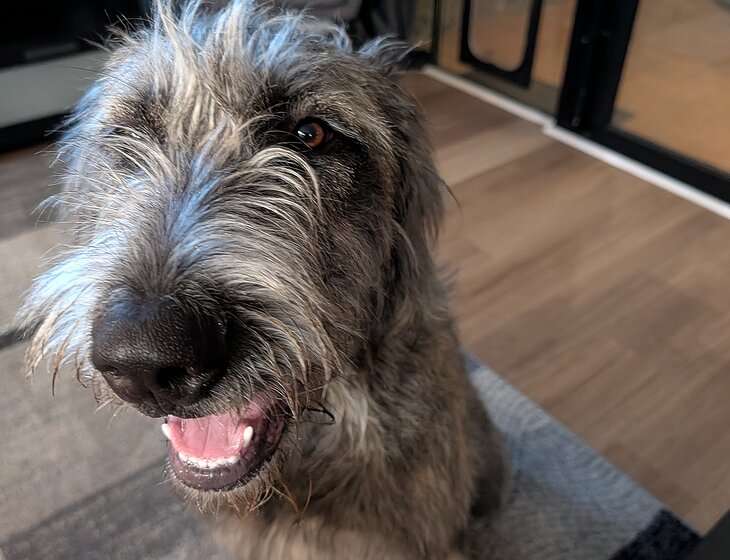 We have two beautiful and affectionate Irish Wolfhounds who are well-behaved and full of love. They’ll happily snuggle up beside you and enjoy your company.