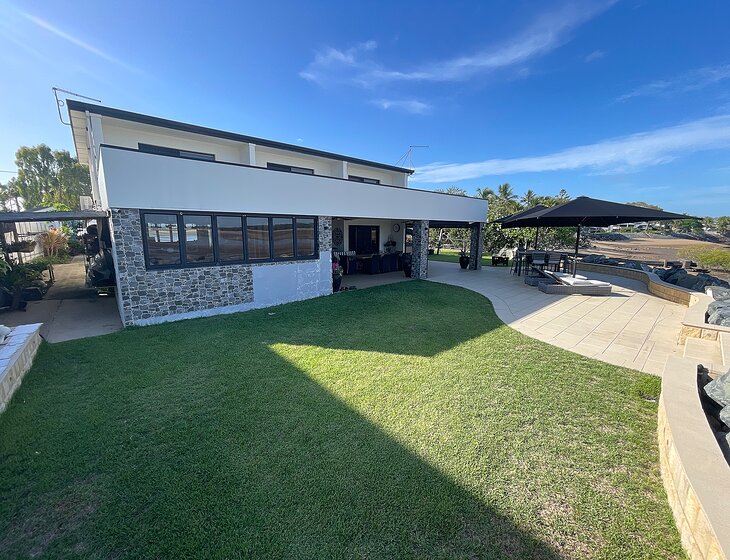 Four bedroom high set on the beach with a granny flat that my 85 year old mother lives in. Whilst she’s independent it’s reassuring to have someone in the home just to pop in on her from time to time and the company is beneficial. We have no pets and as there is no back fence we’d prefer someone without pets. Watering of plants and gardens is on a timed sprinkler system with general lawn and garden maintenance needed. There is room for a caravan on the front footpath if needed.