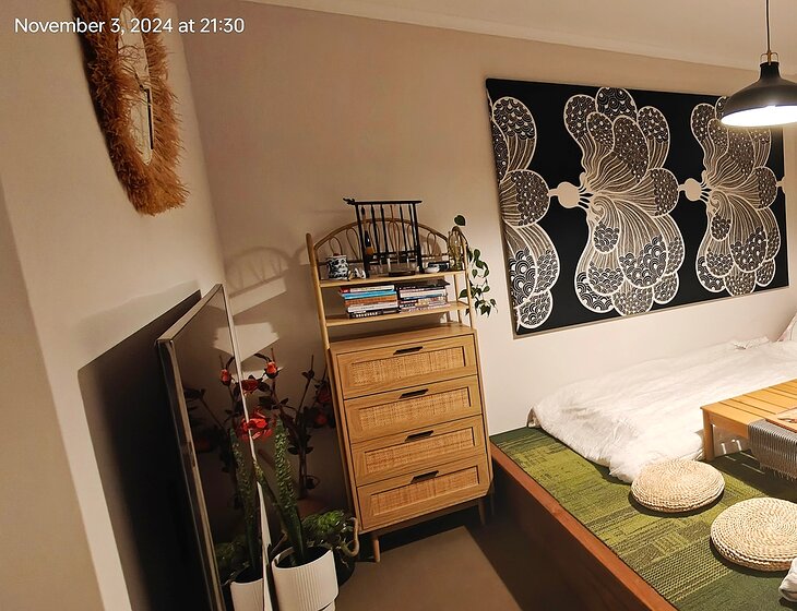 The house has a relaxed boho style, while the guest bedroom (your room) is designed as a calm Oriental tea-room style retreat, perfect for rest and downtime. You’ll have: