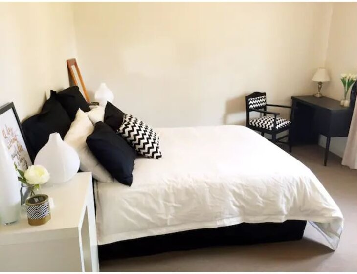 Our home is a renovated 1950s double brick house, perfectly located halfway between the city and the beach. It features a brand new kitchen and bathroom, and a lovely open-plan kitchen/dining/living area that opens onto a deck with BBQ and a large, grassy backyard.
