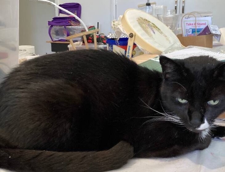 We have Digger the shy 15 year old Moggie cat. He is fed twice a day. He does not need medication.