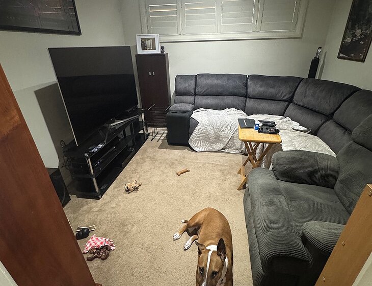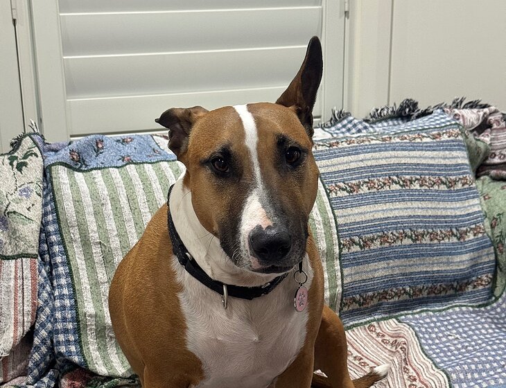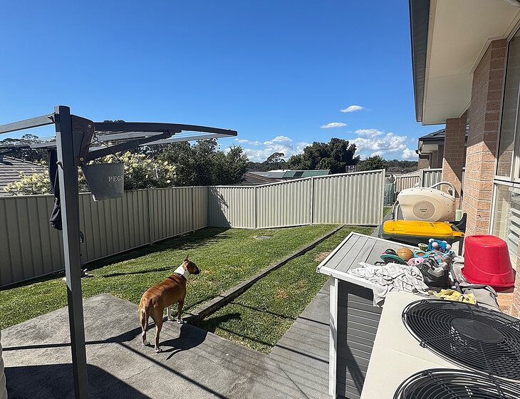 I have a dog, her name is Koda, she is a bull terrier cross. She is the main reason I need a sitter. She is 3yrs old (DOB- 23-02-2023), she has some anxiety problems and separation issues, she will be standoffish when she meets you until you sit down and she gets to know you and she will be all over you. She is an inside dog, unless you leave the house then you will put her out. she does have some separation issues. She takes two anxiety tablets every morning and these must be given. She sleeps on the bed with you or in the TV room, she does not get on with other animals. My mother lives next door (she is 91 years old) and there is a gap in the fence that allows access to both houses. Koda is free to go over to Mum's. Mum also uses my bins for her rubbish and recycling.