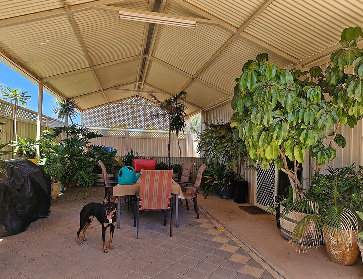 Neat tidy brick home in quiet areawith reverse cycle air conditioning wifi, 3 bedroom study and games room. Large backyard can accommodate caravan motohome or bus. Not much watering most on auto system. Only pot plants to be watered. 2 dogs 3yo kelpie 6yo border collie x kelpie which needs walking. Both outside dogs very friendly and love attention