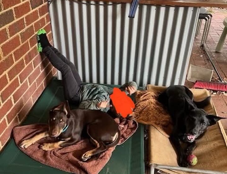 We have one 8 year old and a nearly 1year old Kelpie they like to go for a walk in the morning and if the weather permits in the evening again. Both are very friendly and well trained and the older one sleeps for most of the day, where else the puppy needs and wants a bit more entertainment.
