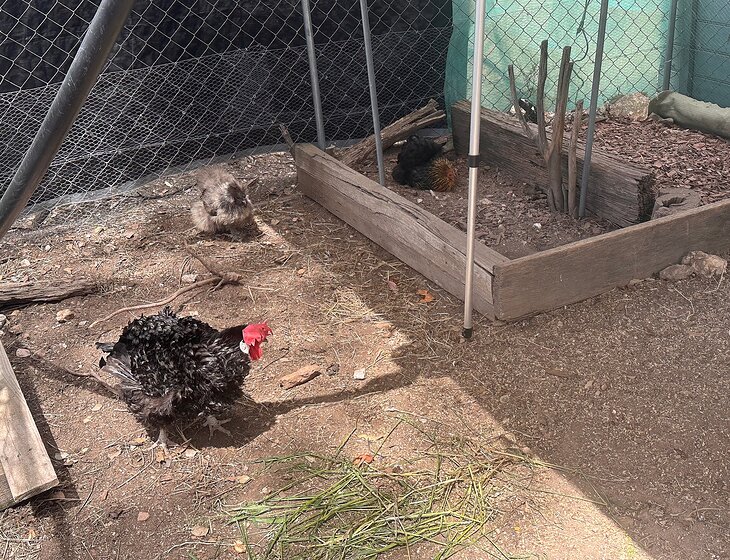 Pet sitting required: | 4 other animals (3 hens 1 rooster) |