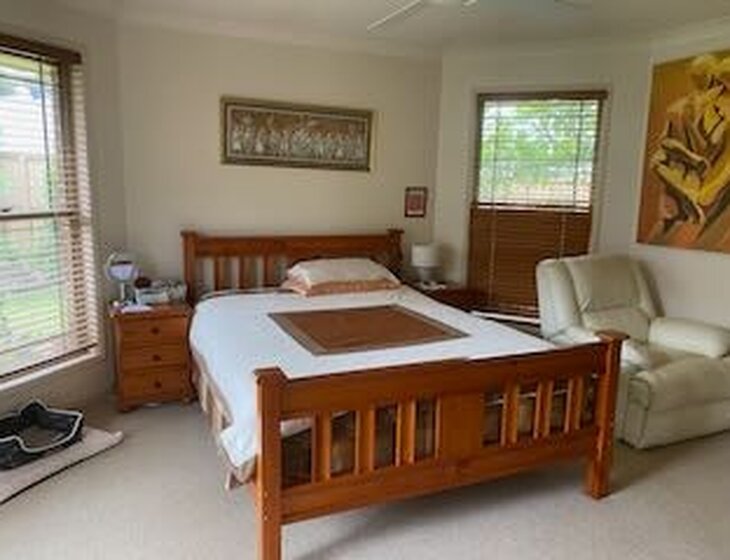 I live in a quiet, leafy neighbourhood in Suffolk Park NSW (Byron Bay area). My house is a fairly large open plan 3 bedroom plus a sauna room, office and living room...and all on one level and very user-friendly.