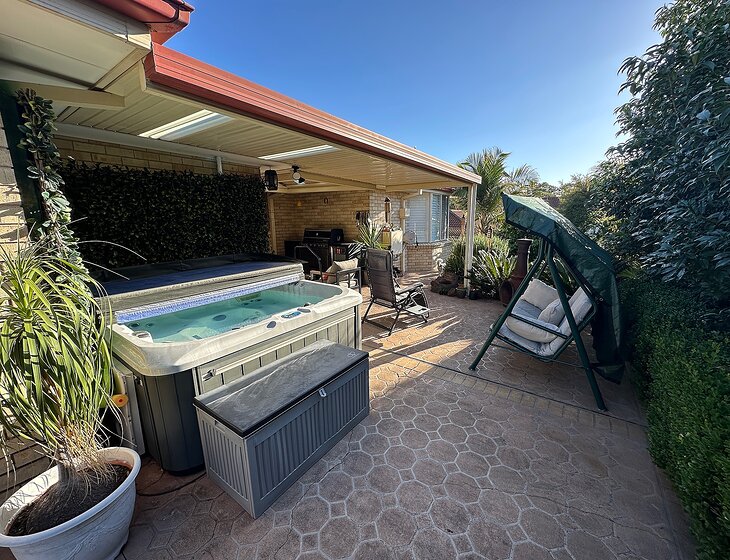 You can enjoy air conditioned comfort watching one of the many streaming services we subscribe to or relax in our private rear yard enjoying the hot spa waters.