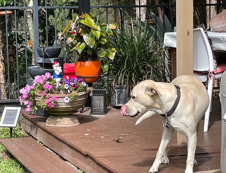 We have an abundance of wild birds, sulphur crested parrots, Corella parrots and lorikeets and of course you can feed the numerous water dragons with fruit even hand feed some of the birds and water dragons.