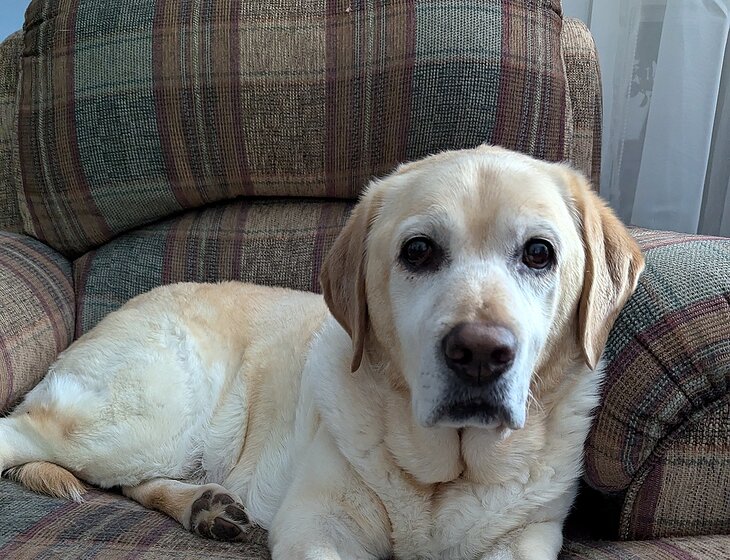 Ella is a classic Lab who has mastered the art of the "daytime nap." Now that she’s 11, she is very chilled out but loves companionship. A few things about Ella: