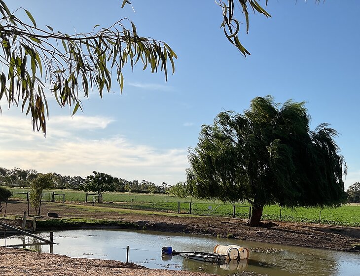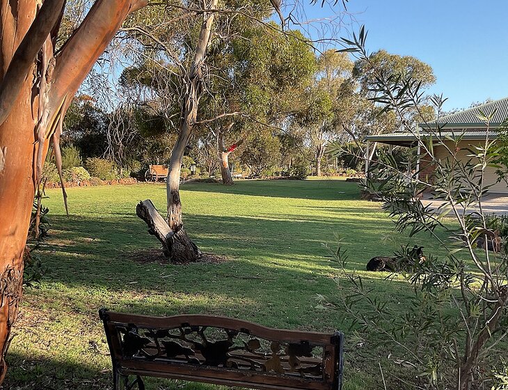 We have a 50 acre property & have dorper sheep. Our house is surrounded by a spacious garden including a bbq area. We are 5km from Swan Hill situated on the main highway. We have a dog & few chooks.