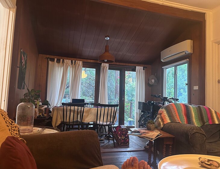 We have a 2 bedroom 1950s cottage and a delightful well behaved schnoodle we need looking after and our plants watered .Our house has a fan and reverse cycle split system in the bedroom and sitting room . It is a 15 minute walk through the park to the beach . Hilda needs one 30 minute walk in the morning and a shorter walk up the road in the evening. She can be left by herself for some of the day .