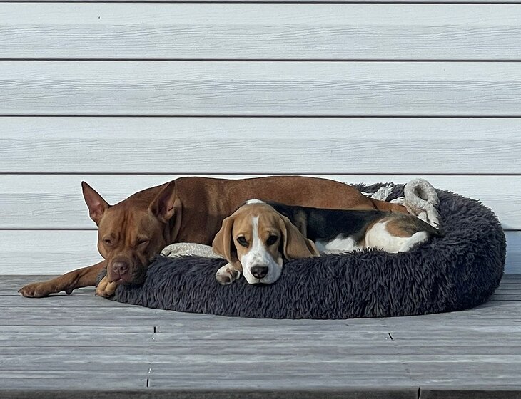 We have 2 medium sized dogs that is very friendly and loving. One is a beagle and the other a mix breed.
