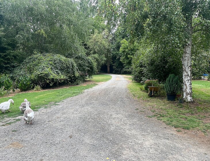 The only animals to look after are three geese, which free range, and our adorable, friendly dog Dozer