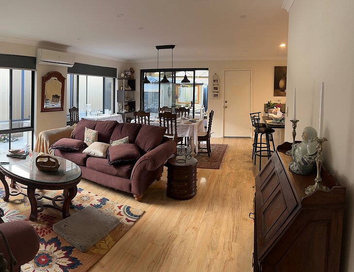 3x2 in park filled area - close to transport links, beach, great walks. 2 dogs and 1 cat - all rescues and prefer women to men so either couple or a woman would be ideal. Minimum garden - small patches of lawn and pot plants. Pets mainly require feeding and a bit of company. They do not enjoy walks.