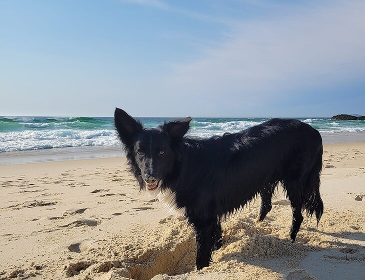 I have a 4 year old border collie named Alfie who loves his morning beach runs, plus another shorter walk/run on the beach/swim at the lake in the afternoon.