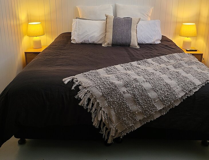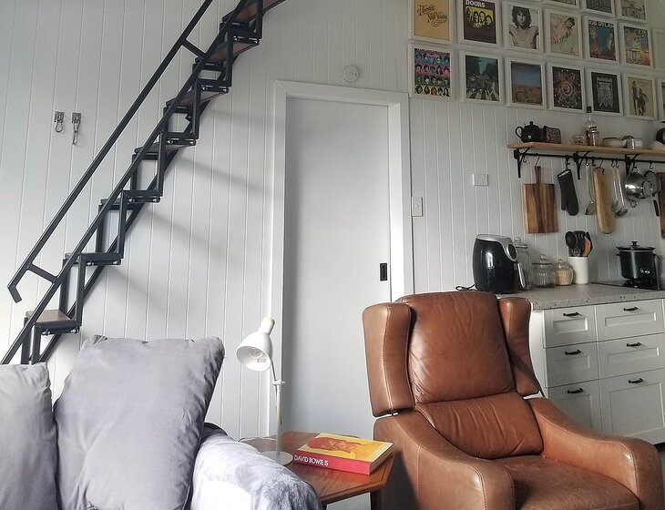 My dwelling is a rather unique, shed home, fundamentally it is a loft dwelling. Just one ensuited well appointed bedroom, with TV, large 2 head shower. Modern kitchen/ living, air conditioner and wood heater. Electric cook top, microwave, small oven and dishwasher. Large smart TV. There is an optional second bedroom space but not currently furnished. The home is completely off grid and has its own water supply.