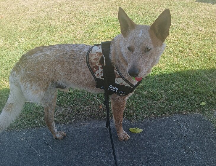 The person interested must have a knowledge of ACD , ( Australian cattle dog )as my rescue dog , GUS is only 2 years old and even that he has only 3 legs he is very active and energetic , he is a red heeler cross kelpie , very friendly , but need an assertive person to contain and focus his energy .