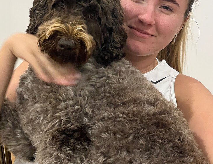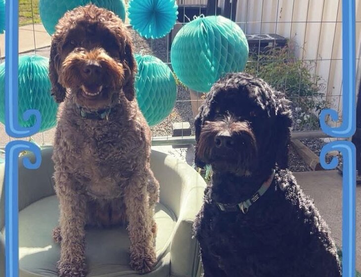 We have two labradoodles who are very friendly and live people.