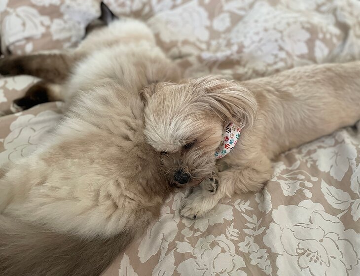 Ruby is a small Shih-tzu cross who loves cuddles, attention, the occasional play session and her nightly walks. Willow isn't much for cuddles but enjoys being around people and telling you stories. They are both mostly used to company in the evenings, so it's fine if you're busy out and about. I think they mostly sleep all day!