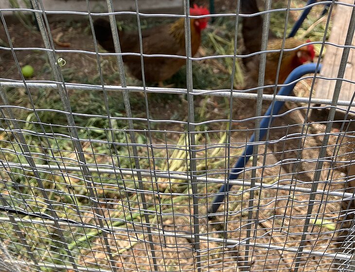 The chickens live in a secure run, and need their food, water and shell grit checked/topped up daily - plus any kitchen scraps you might have will gladly be gobbled up! They also require checking to make sure they are also all in their coop each night (one of them is silly and tries to roost on top of the coop rather than inside). Fresh eggs will be available for the chosen sitter to use if desired.