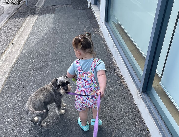 She’s good on lead and can be off lead on the beach or at the dog park. She doesn’t always appreciate it if she’s approached on lead by another dog or a man.