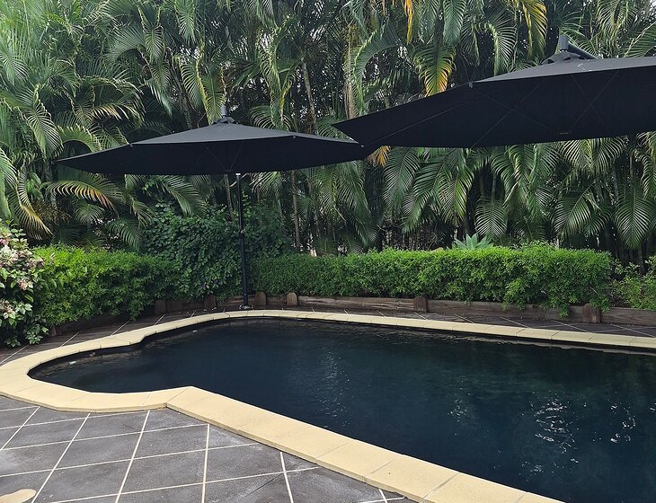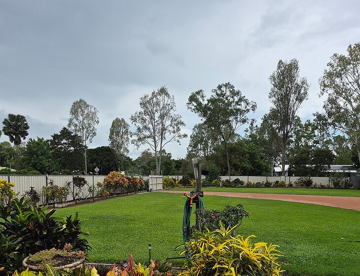Our 3 bedroom home is located on an acre approximately 30mins from the city centre . Established gardens, fully fenced with electric gates, outdoor security, extremely private block, pool, chooks also a fully furnished Donga for our guests so privacy is assured.
