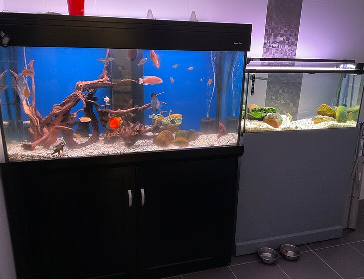Pet sitting required: | 1 dog, 10 other animals (Fish ) |