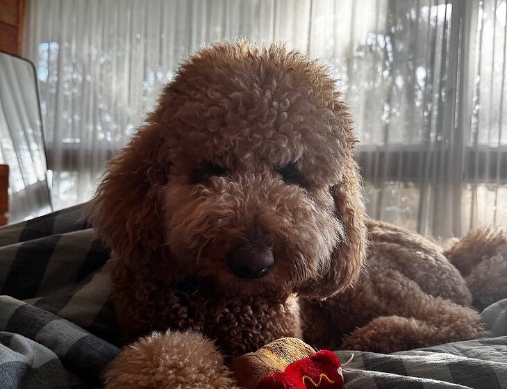 We have a 4 year old labradoodle named Moe.