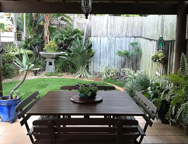 My home is a 3 bedroom Duplex with a beautiful small garden. There is a Balinese thatched roof patio facing the Bali inspired garden. It’s a fabulous entertaining area. The house is just a short stroll (400 meters) to the beach and Tugun Village cafes.
