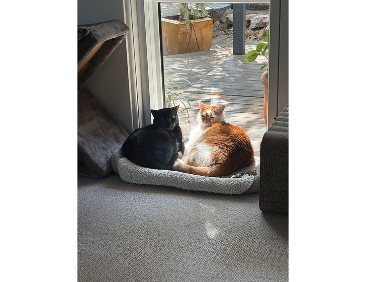 Our two cats live indoors but have their own access to an outside run. Caring for these two is our main ask.