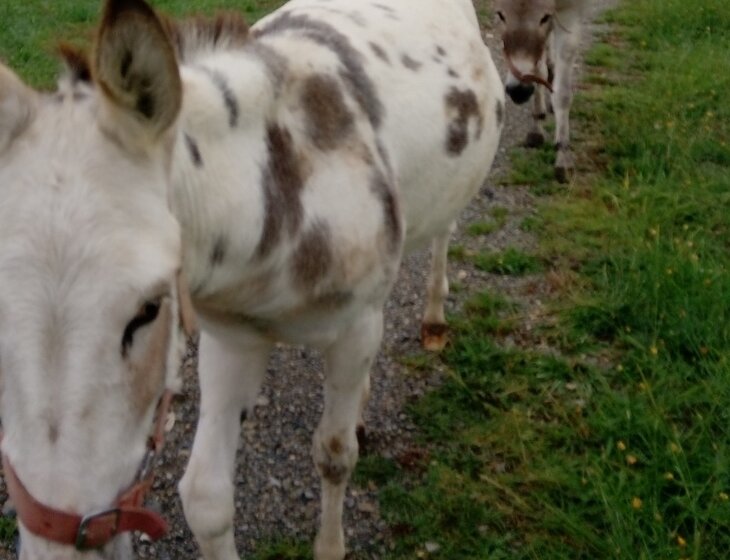 We have 1 cat, a friendly 9 y.o. Labrador, 2 budgies, three ducks and 12 hens ( in a fox-proof enclosure), five goats ( virtually no care required) and 2 donkeys (they love attention, but are also happy entertaining themselves). The cats, dog, budgies, chickens and donkeys need feeding. The dog enjoys a walk or two per day and loves pats and play. The rescue donkeys need to have their hooves cleaned and have a couple of supplements to keep them.