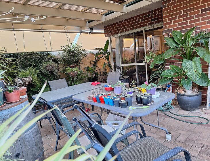 We have a lot of outdoor pot plants that will require watering every day in hot weather. Sitters should bring in the mail and keep the front of the house tidy.