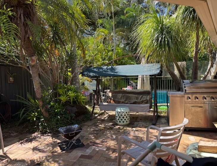 We have gardens front and back of the house good for sitting with a cuppa or for reading. It does need mowing and a bit of maintenance. Fortunately, we have a watering system for all the plants and trees. So it isn't too strenuous but you do need to like a bit of gardening or the weeds will take you away with them.