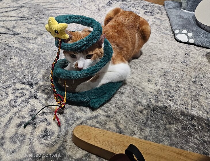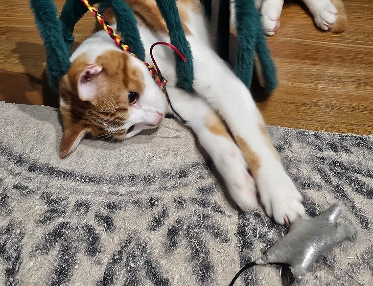 Kitaro thinks he's a dog, and loves to play fetch with his pom pom and bring it back 🤣🤦♀️