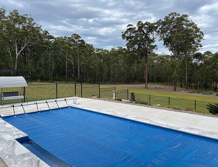 5 bedroom home with pool. 5 minute drive to the beach and local shops including Coles and Clubs. Courtesy buses for local clubs. Pickleball court set up on driveway with local club at Old Bar, Taree or Halliday’s Point.