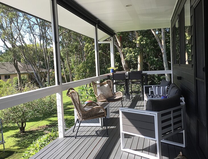 Our house is a lovely home on Lake Macquarie in the village of Wangi Wangi. There are 2 bedrooms and a sofa bed in the study. The home is full of light and has a view of the lake from the deck. There is a wood fire to curl up in front of for those cold days but also an air-conditioner if preferred.