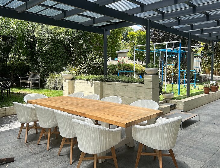 The backyard is low maintenance green, quiet and relaxing with a large covered outdoor entertaining area. There is a BBQ for use.