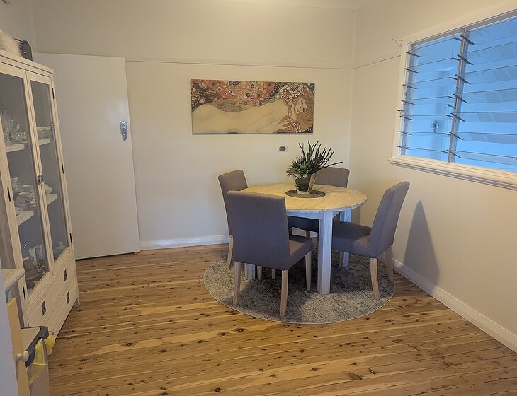 Low set 3 bedroom house with you own allocated room which includes a queen size bed and built in wardrobe & shelves. There is a wood fire stove in the kitchen if you would like to use for heat but I do have an oven with hotplates and microwave. There is 2 x reverse cycle air cons. Included is a sunroom, bathroom, separate toilet and an additional shower in the laundry.