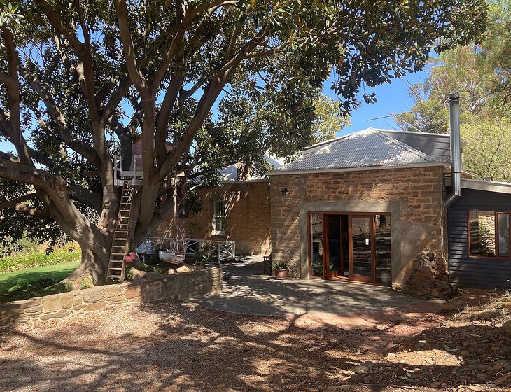 165 year old stone cottage with a loft that has a bedroom, living room and bathroom.