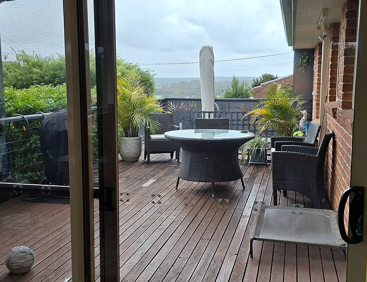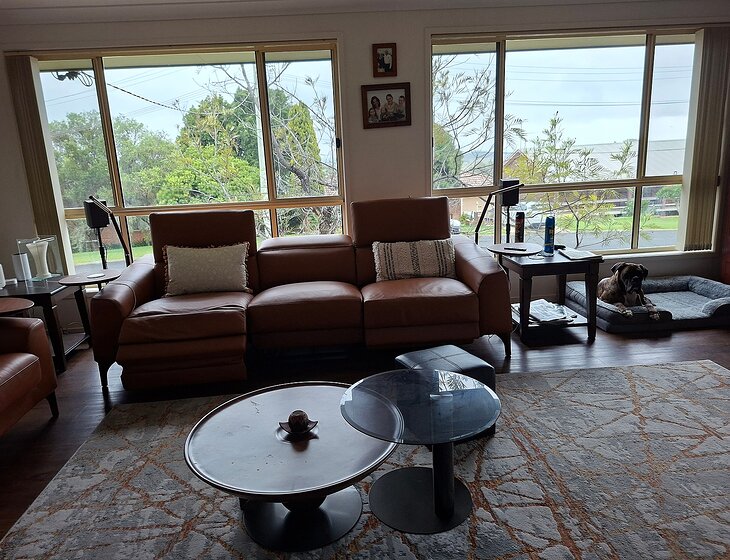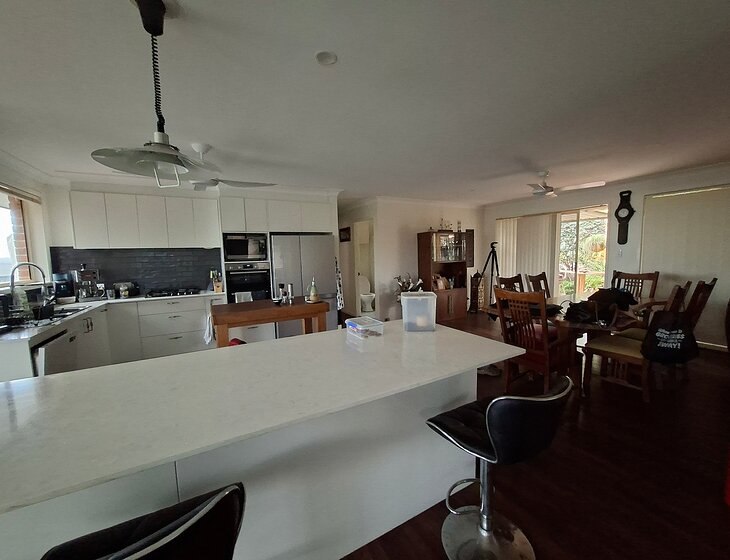 3 Bedroom house with lovely views, large balcony, yard and spa. Small town with all amenities and several lovely cafes and a river. 20 min drive from Port Macquarie beaches and restaurants. We have a medium size friendly 8 year old boxer dog that will need daily walks.