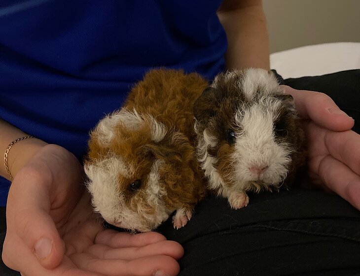 We have two cavoodles who sleep in our bed, an old cat who comes and goes, and two young guinea pigs.